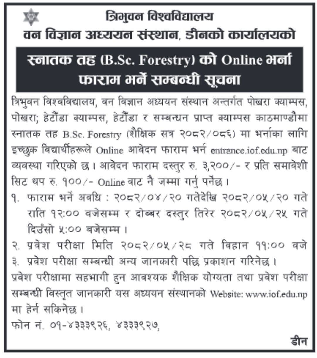 वन विज्ञान अध्ययन संस्थान पोखरा क्याम्पसल... Read More ...
