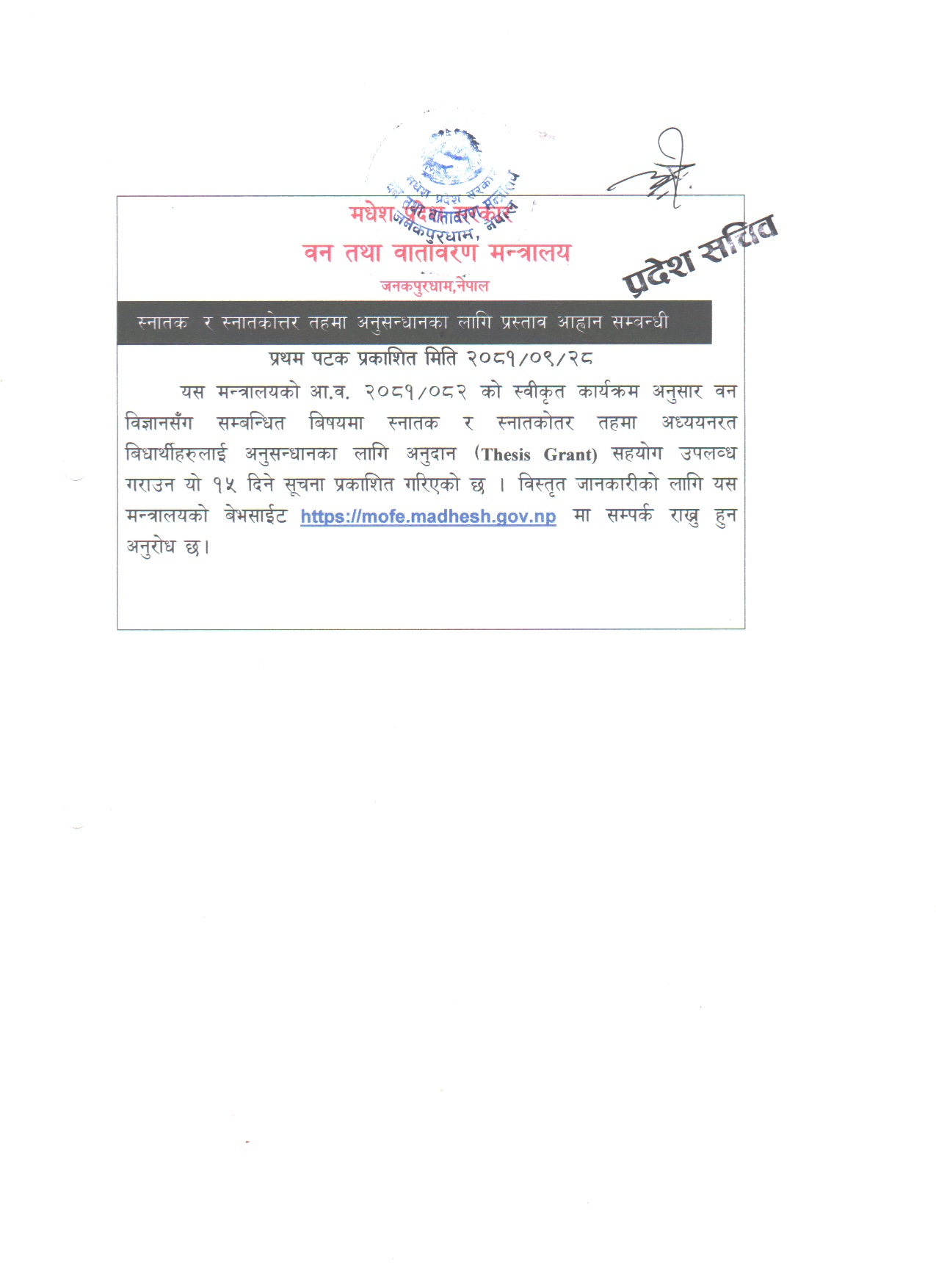 स्थानिय विदा २०८२ सम्बन्धी सूचना।