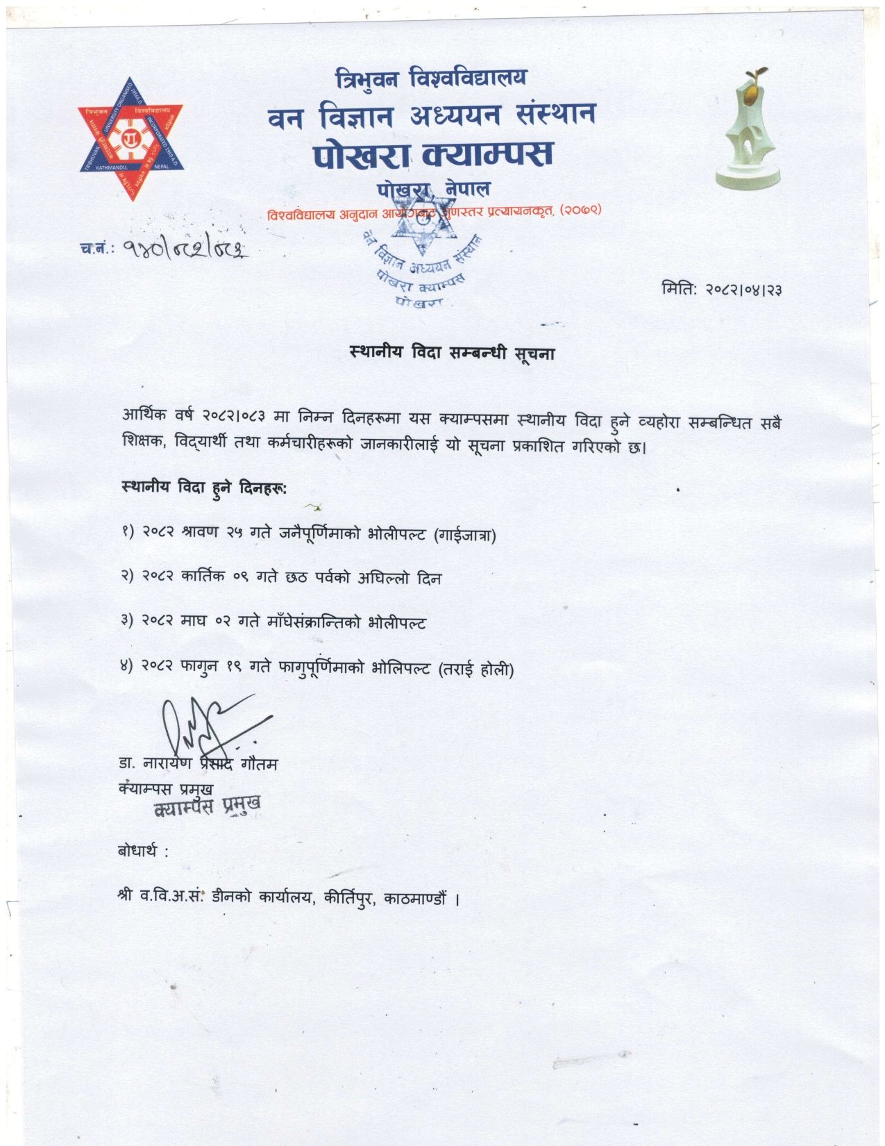 स्थानिय विदा २०८२ सम्बन्धी सूचना।